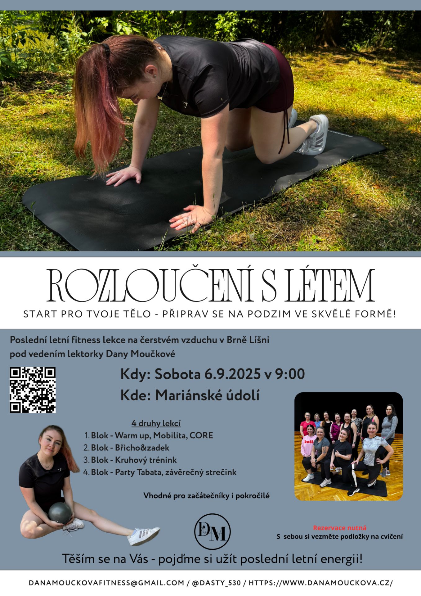 Od 2.9.2025 cvičíme v nových prostorách - malý sál v MišMaš Fitness. Přijďte si s námi zacvičit. Těšíme se na Vás!